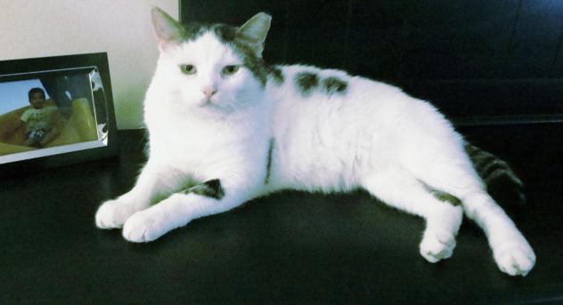 Morton (larger brown tabby with small white dot on chest) was adopted from us in Aug 2013 as an adult (2-3 yrs old). He is FIV+. This couple subsequently adopted Lola (small gray tabby with white chest) who is also FIV+ from another rescue as his companion. After working through some initial stool issues with Morton, he has been extremely healthy every since, and obviously eating well. He is a bengal mix. Lola has also been very healthy. They are a wonderful loving pair.