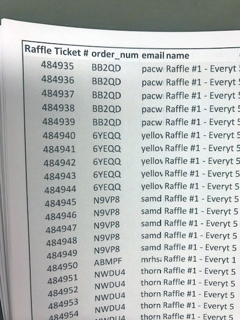 | Sample of Raffle Spreadsheet | Winning Tickets |