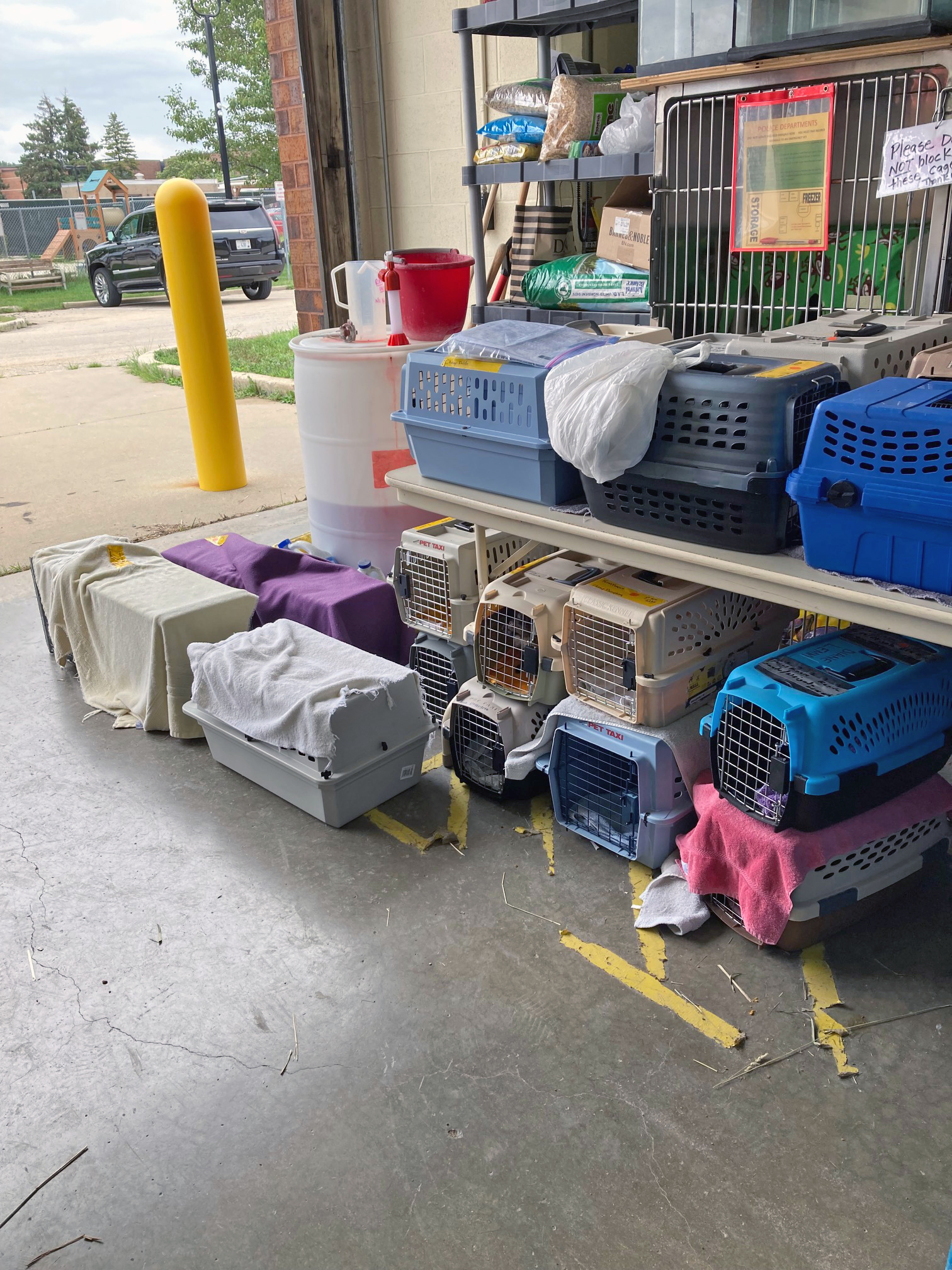 After surgery at the DCAS mobile unit, the cats are stacked in the garage - here's 18 awaiting pickup!