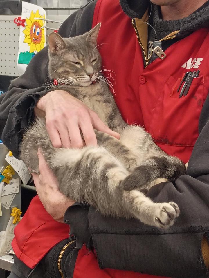 Meet a recent working cat alumni, Gizmo. He's employed at the Ace Hardware on Westmore-Myers Road in Lombard. Gizmo was a semi-friendly cat who had been up for adoption at Aurora Animal control but was not doing well on the Adoption floor. We were able to help him through the Feral Fixers Working Cat Program, and he is the new resident mouser for Ace!