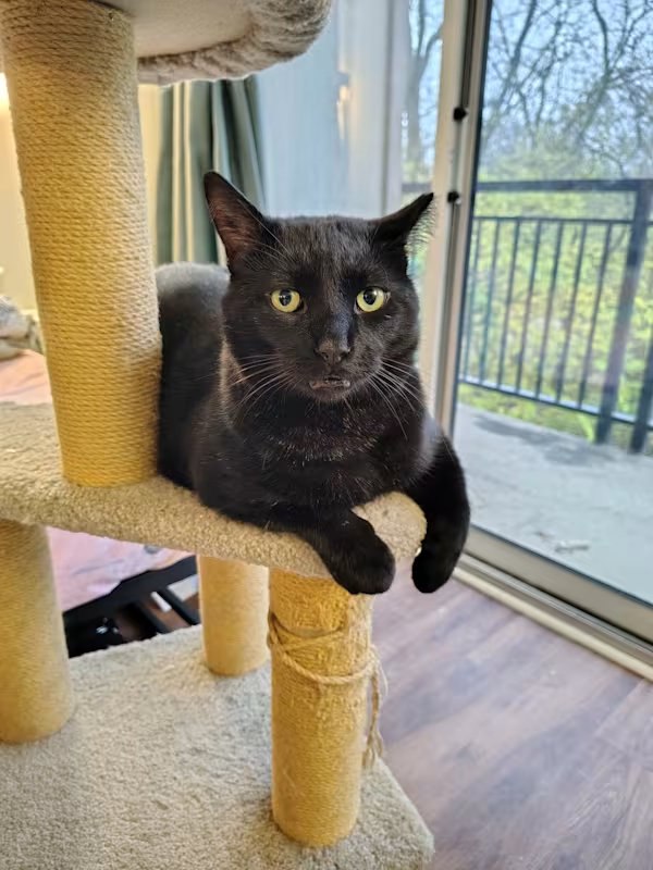 This brown tabby is a great character. Loves bird and squirrel watching, running from window to window – he is a big boy so be sure to have a perch and windows big enough! He’s one year old and loves belly rubs but not children so much. He wants to be the only star in your home and will tell you all about it as he is vocal. Give him a chance to get comfortable and he will change your life!